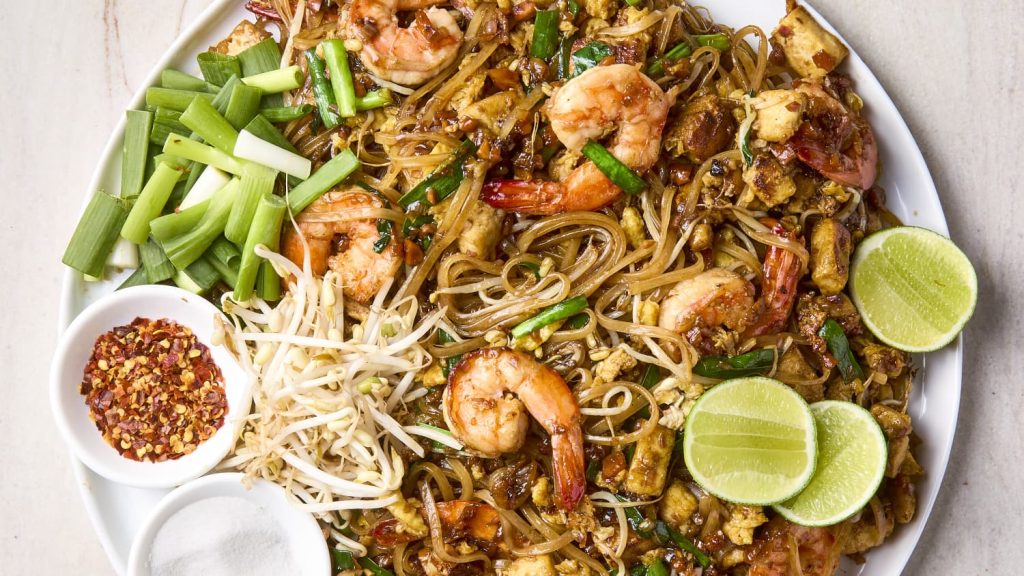 One of Thailand’s most famous dishes, Pad Thai is a stir-fried noodle dish with tofu, shrimp, eggs, and bean sprouts, topped with crushed peanuts and lime. It’s the perfect balance of sweet, savory, and tangy flavors.